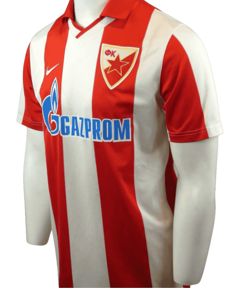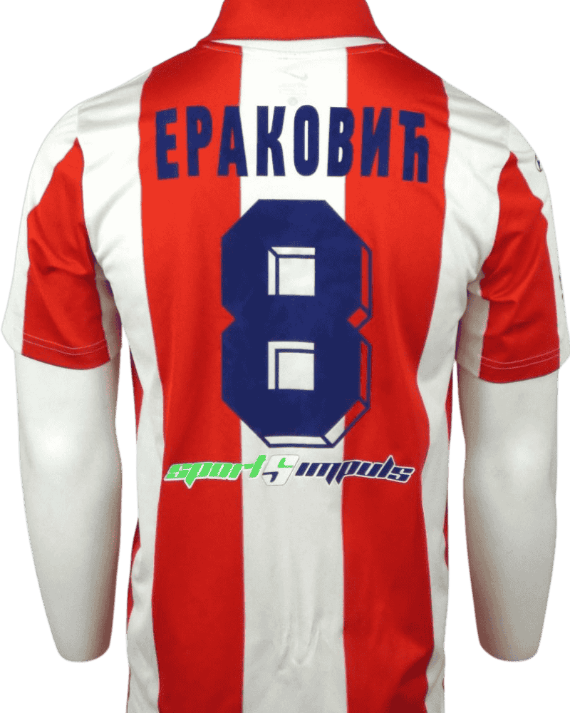 Dit is een vintage thuisshirt van Rode Ster Belgrado (Crvena zvezda), uit het seizoen 11-12. Achterop het shirt de naam en het rugnr van de centrale verdediger Strahinja Eraković.