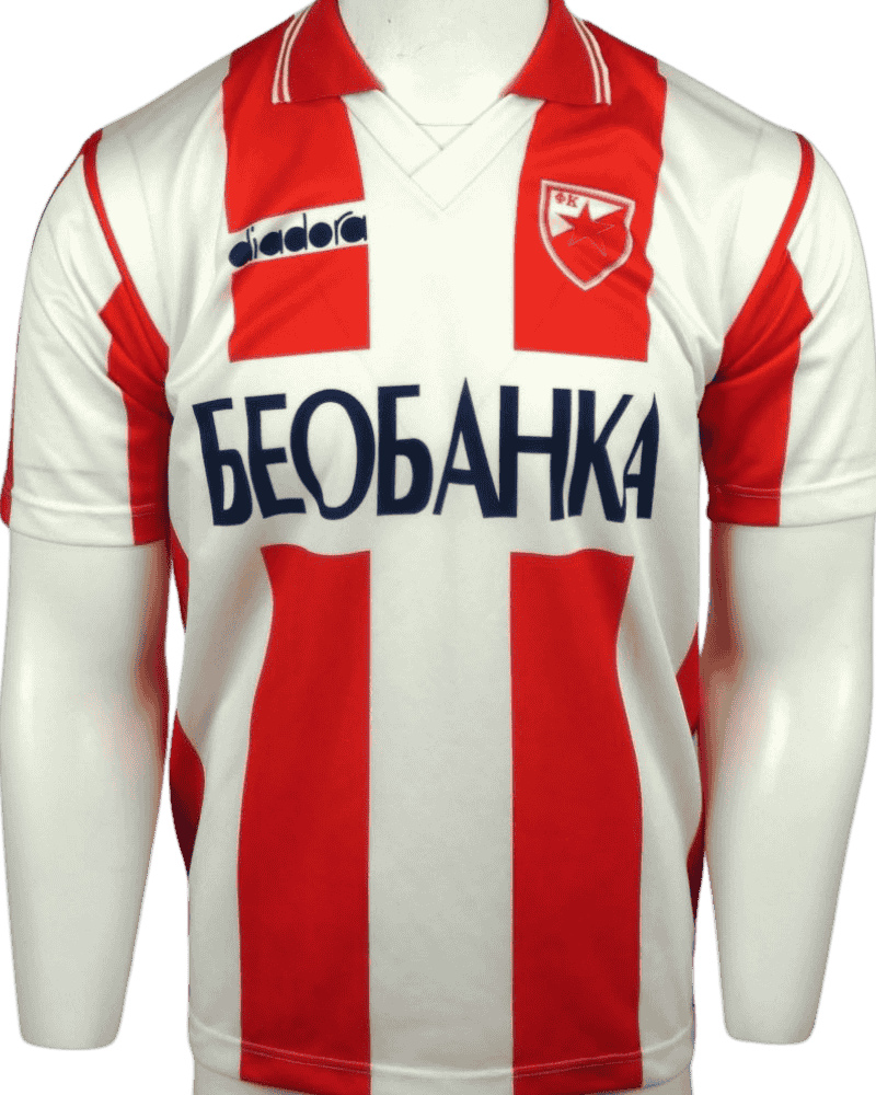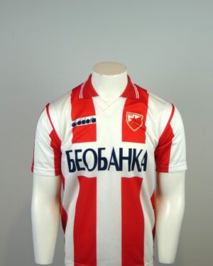 Dit is een vintage thuisshirt van Rode Ster Belgrado (Crvena zvezda), uit het seizoen 94-95.