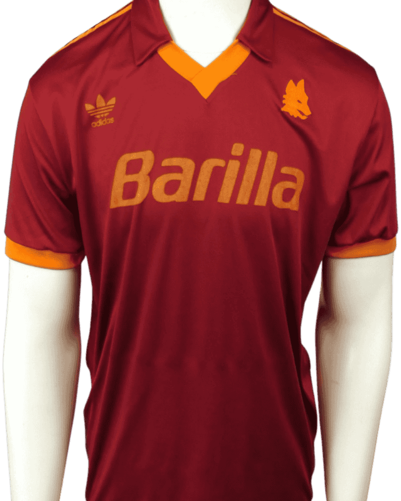 Achterop het shirt rugnummer 10 van Giuseppe Giannini. De begaafde middenvelder speelde maar liefst 426 wedstrijden voor Roma waarin hij 75 keer scoorde.