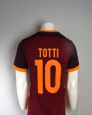 Dit is een vintage thuisshirt van AS Roma, uit het seizoen 15/16. Achterop het shirt de naam en het rugnummer van clublegende Francesco Totti.