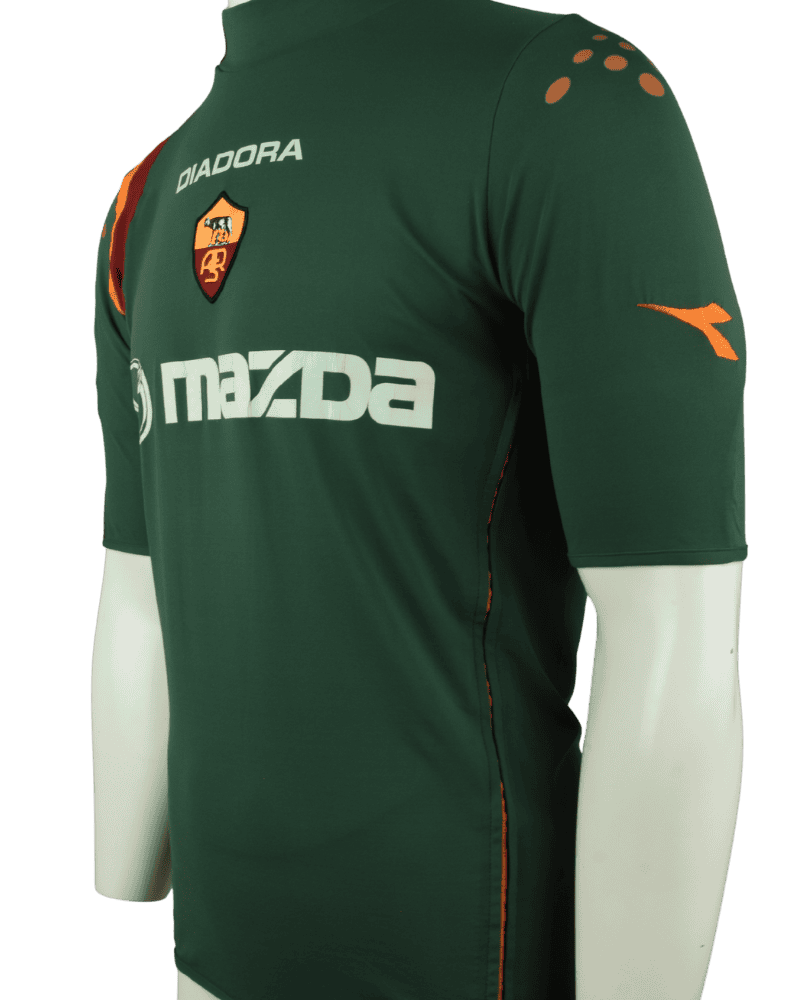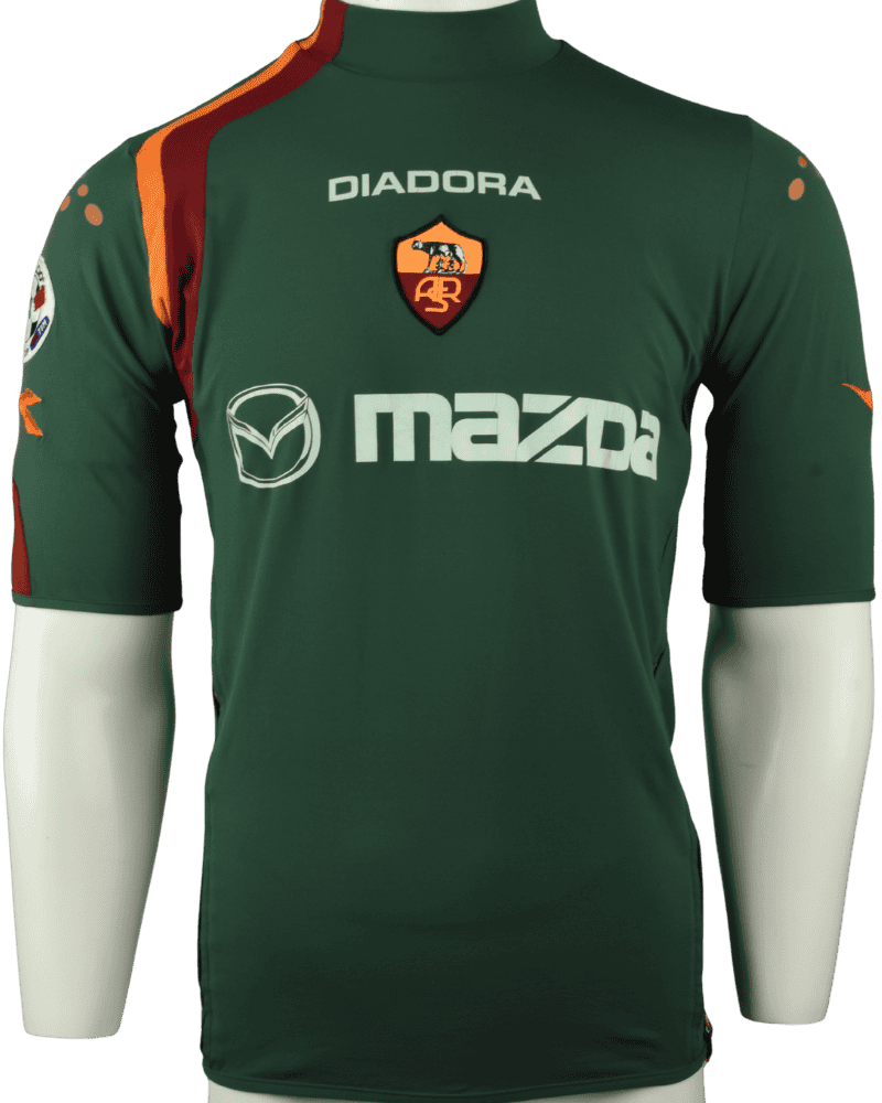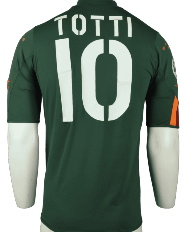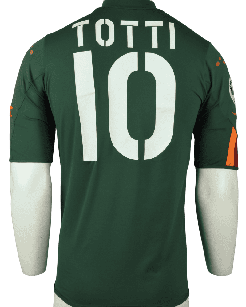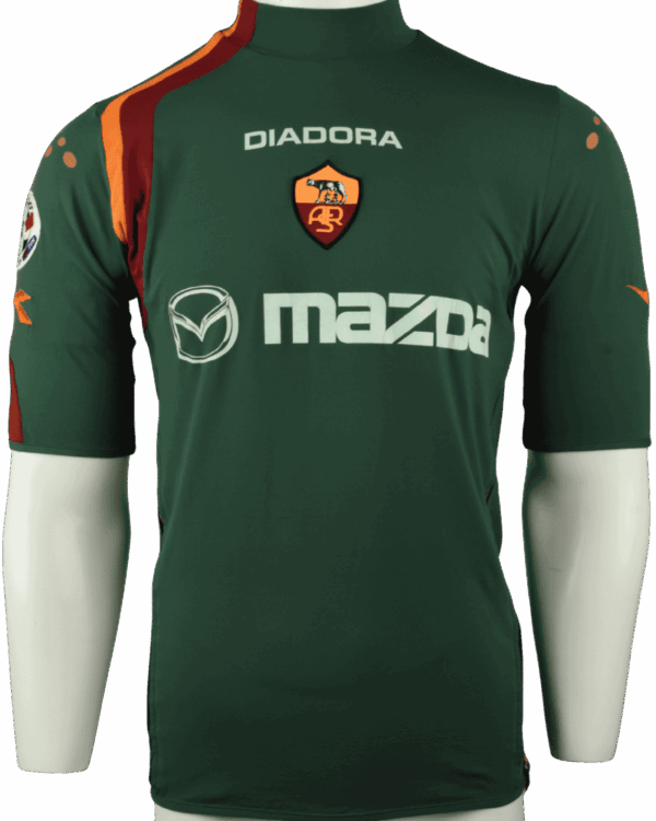 Dit is een matchworn 3e shirt van AS Roma, uit het seizoen 04-05. Achterop het shirt de naam en het rugnummer van clublegende Francesco Totti, die dit shirt heeft gedragen in de Coppa Italia.