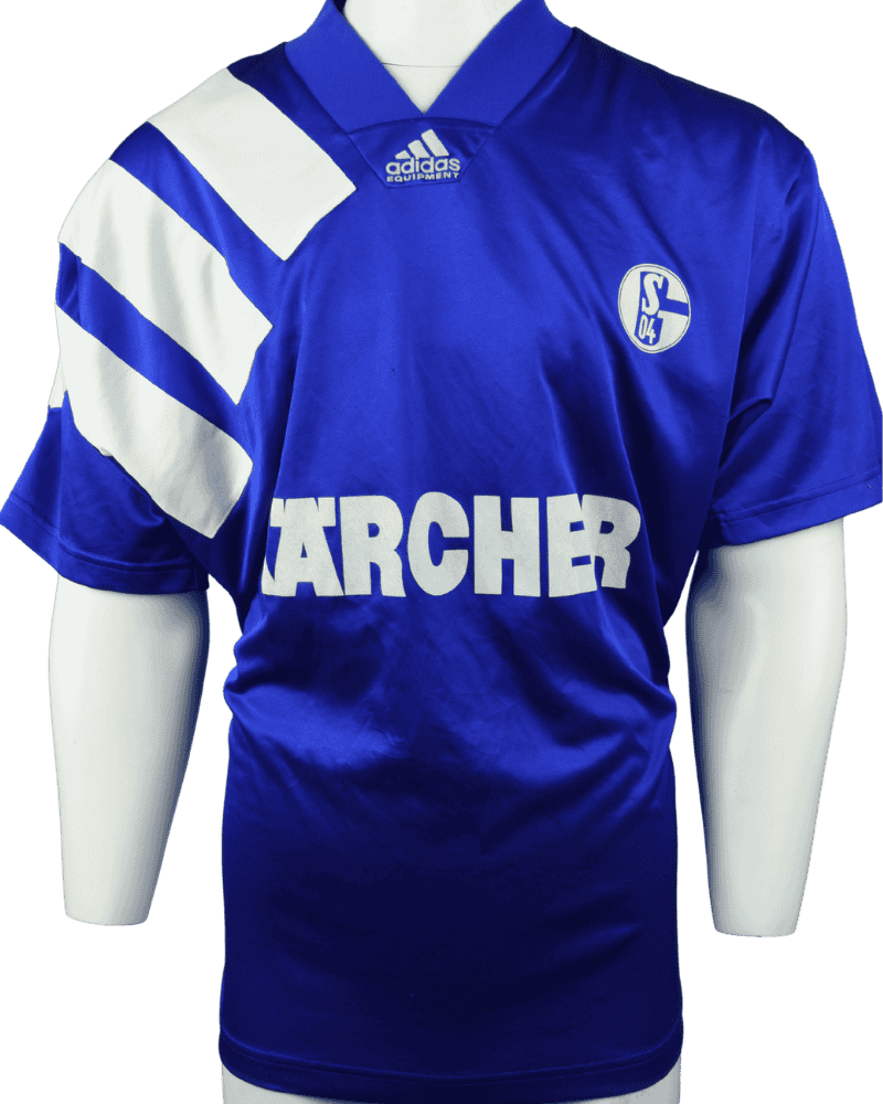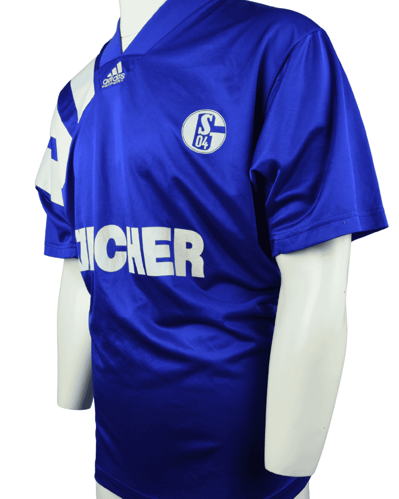 Dit is een vintage thuisshirt van Schalke 04, uit de periode 1994-96.