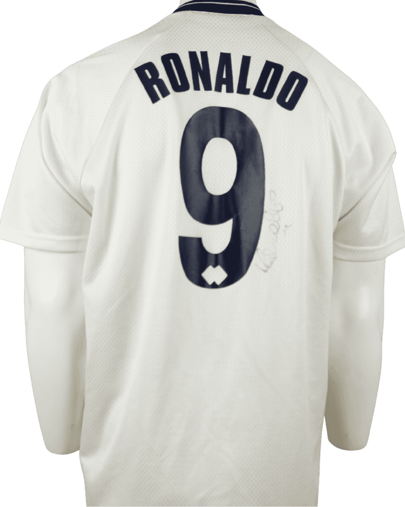 Dit is een zeldzaam shirt wat is gedragen en gesigneerd door het fenomeen Ronaldo Luís Nazário de Lima. De Serie A herdenkingswedstrijd stond in het teken voor de tragisch Superga vliegramp op 04-05-1949, waarbij heel het elftal van Torino (Grande Torino) om het leven kwam