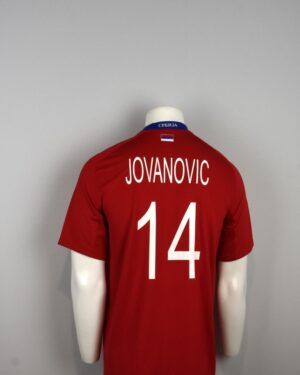 Op het shirt naam en rugnummer van Milan Jovanovic. De spits speelde 44 interlands waarin hij 11 keer scoorde.