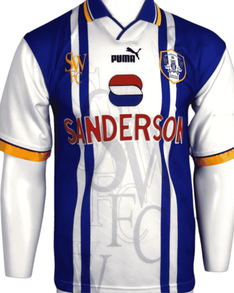 Dit is een vintage thuisshirt van Sheffield Wednesday, uit de jaren 95/97.