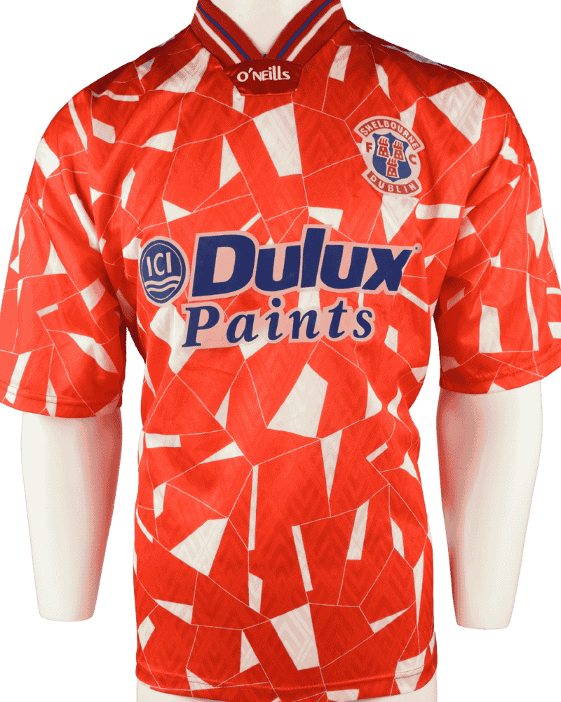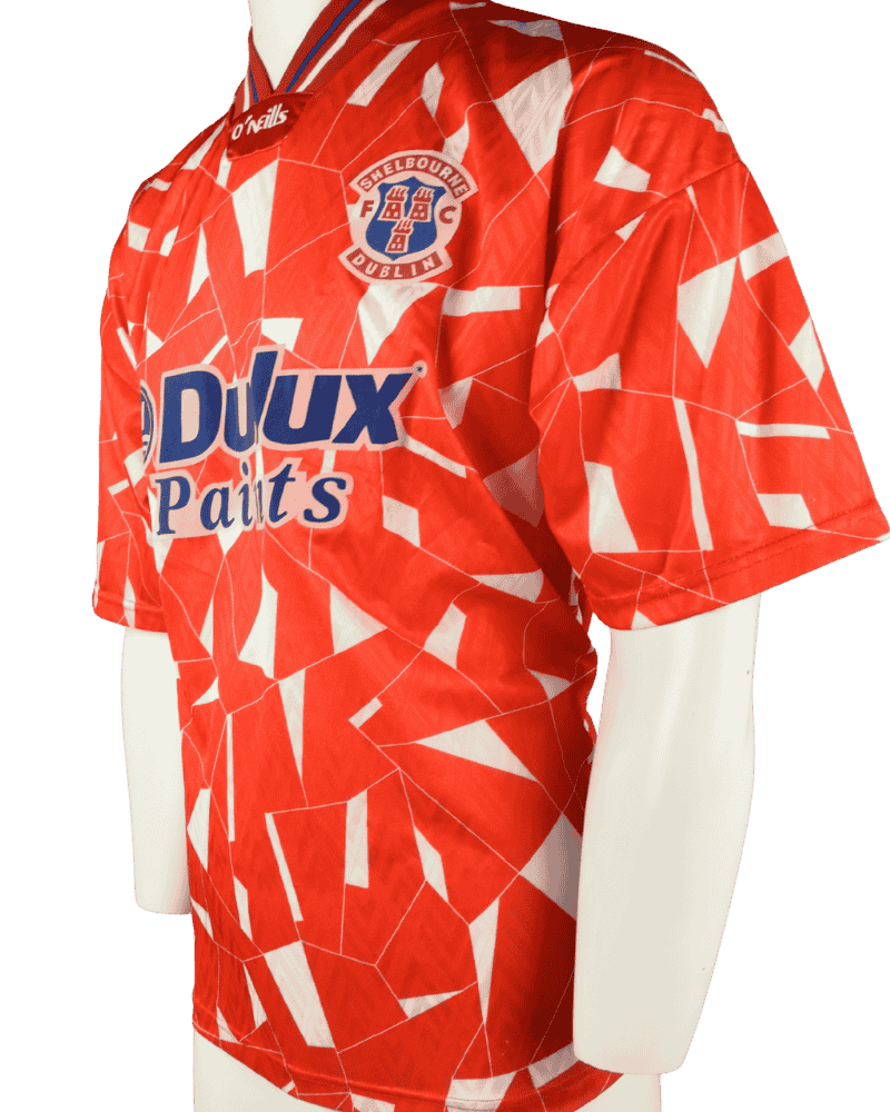 Dit is een uniek vintage thuisshirt van het Ierse Shelbourne FC, uit het seizoen 93/94.