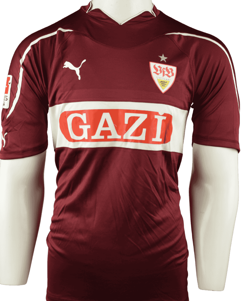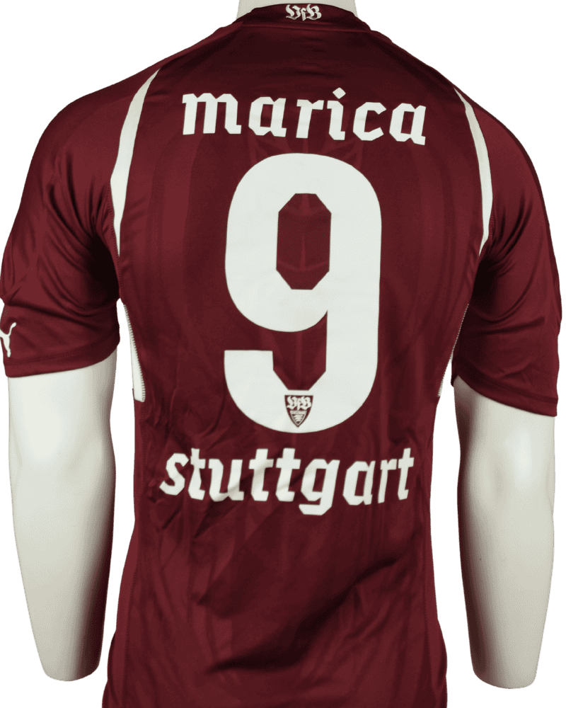Dit is een matchworn uitshirt van VfB Stuttgart, uit het seizoen 10-11. Achterop het shirt de naam en het rugnummer van de Roemeense, aanvaller Ciprian Marica.