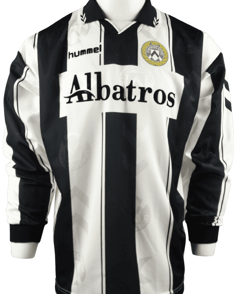 Dit is een vintage thuisshirt van Udinese Calcio, uit de periode 95/97.