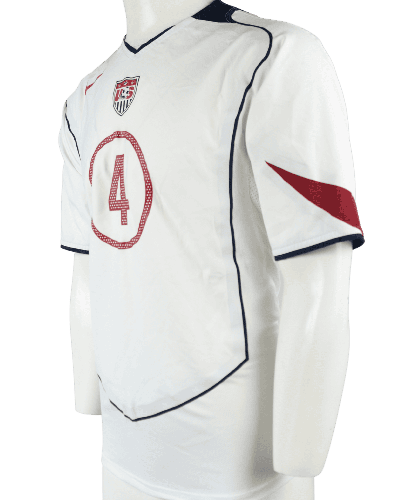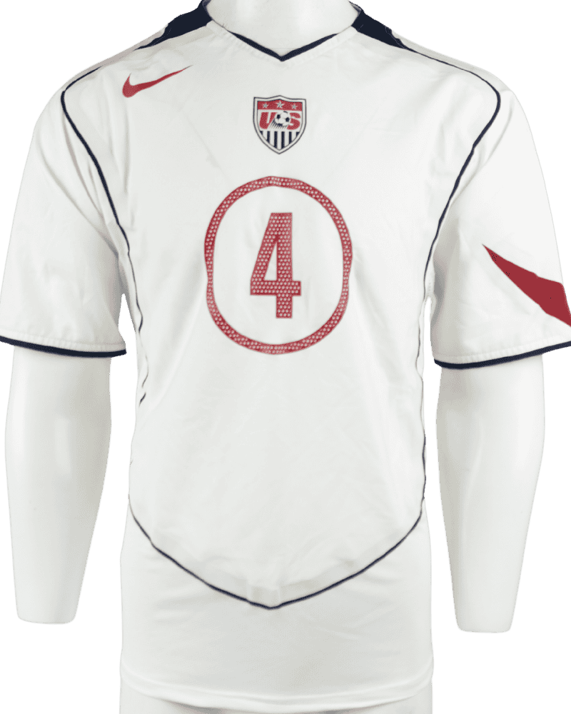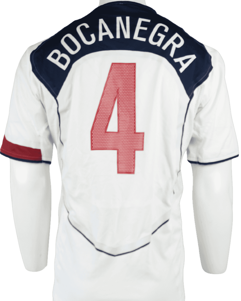 Dit is een matchworn thuisshirt van de Verenigde Staten, uit de periode 2004-05. Achterop het shirt de naam en het rugnummer van de Amerikaanse verdediger Carlos Bocanegra.