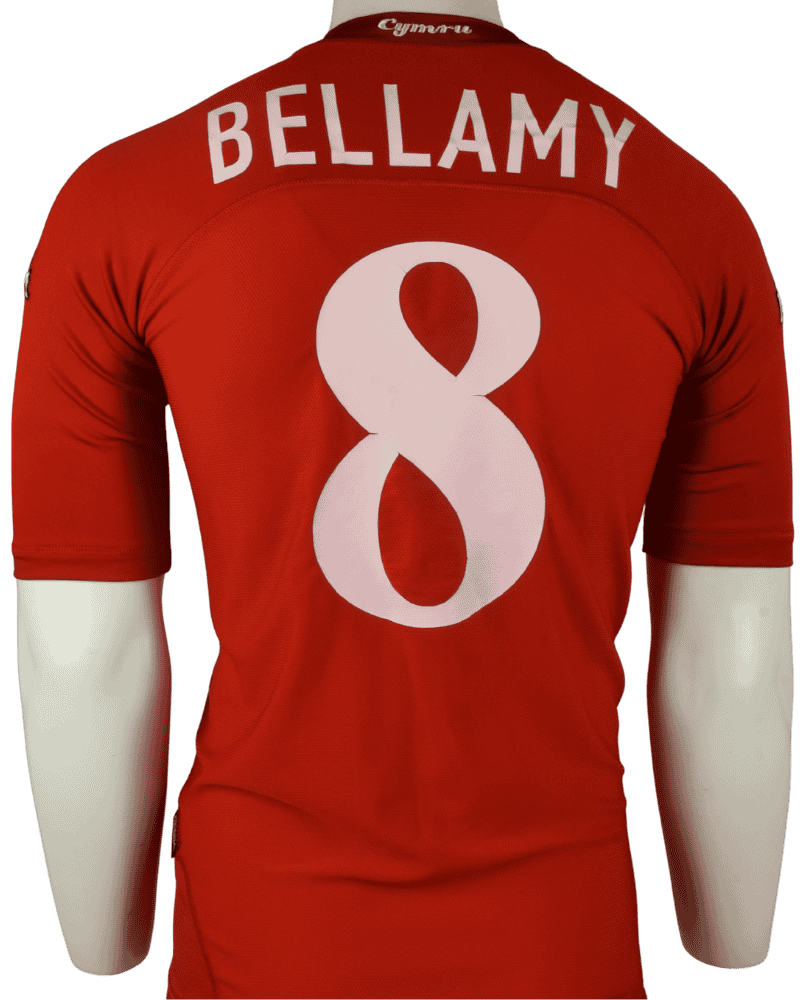 Achterop het shirt de naam en het rugnummer van Craig Bellamy. De aanvaller speelde 78 interlands waarin hij 19 keer scoorde.