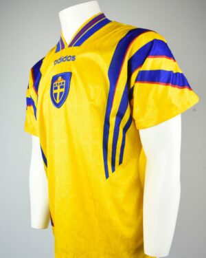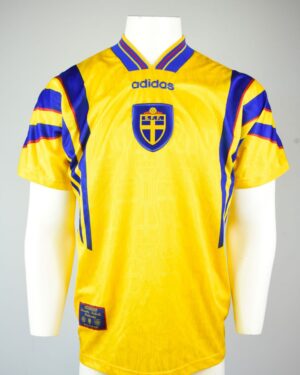 Dit is een uniek vintage thuisshirt van Zweden, uit de periode 1996-98.